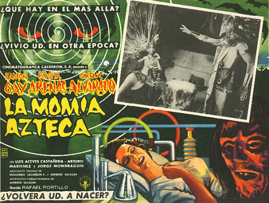 La saga consta de tres partes: “La Momia Azteca”, “La Maldición de La Momia Azteca” (ambas de 1957) y “La Momia Azteca contra el Robot Humano” y mas tarde, “Las Luchadoras contra la Momia”de 1958, las tres dirigidas por Rafael Portillo y protagonizadas por la bellísima Rosita Arenas, Crox Alvarado, Luis Aceves Castañeda y Ramón Gay (el apellido y su estilo de vida son mera coincidencia).